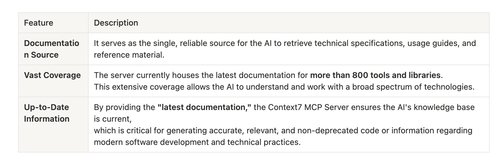 With documentation for over 800 tools, the AI's ability to assist with a wide variety of development projects and technologies is significantly enhanced.