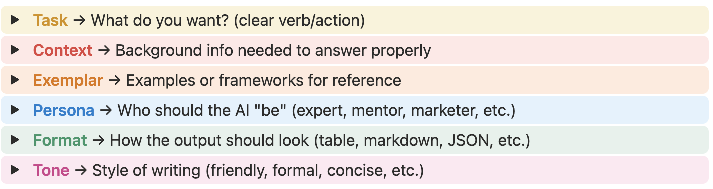 - Persona → Who should the AI "be" (expert, mentor, marketer, etc.)