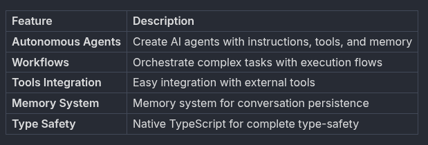 Mastra is a modern and powerful framework for building AI-based applications. Developed with TypeScript, it offers a modular and extensible architecture for creating agents, workflows, and AI tools.